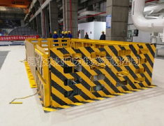 吊物孔檢修圍欄平臺采用杠桿、齒輪機構傳動。由承載框架、安全護欄、行走底板、配合彈簧、配重錘及齒輪組成。材料為輕質鋁合金、不銹鋼、柵格板或Q235鋼板等。